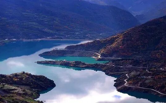 跷碛湖,位于宝兴县,是因修建硗碛水电站而形成的人工湖。冬日的跷碛湖,是一幅宁静的山水画。湖面波光粼粼,远处的雪山倒映在湖中,美不胜收。