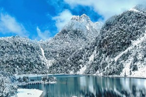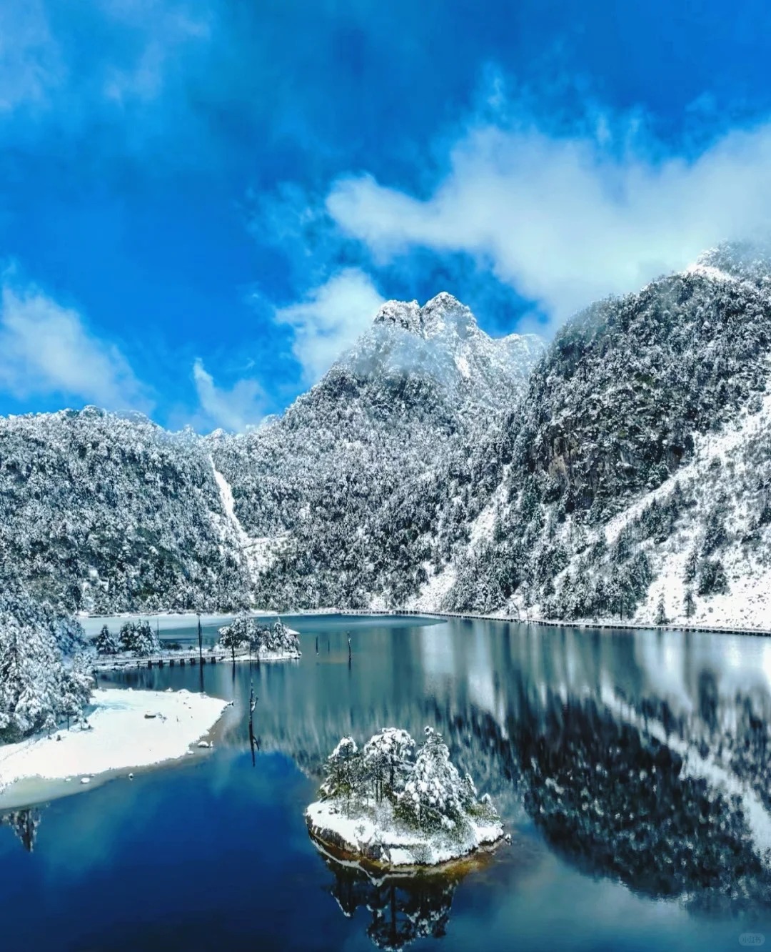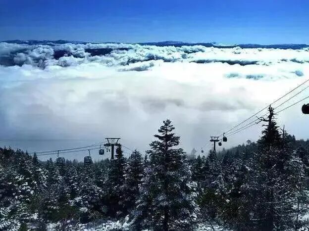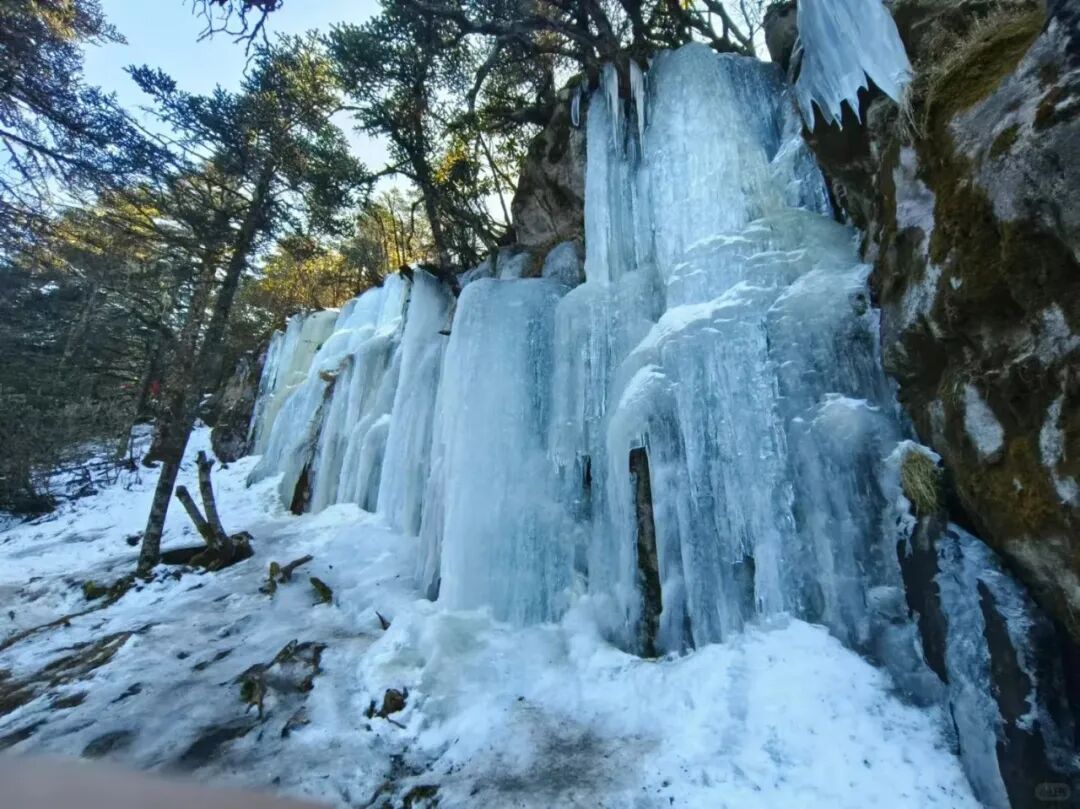 一月初螺髻山山顶的黑龙潭已冰封成翡翠镜,冷杉雾凇被-5℃晨风削成玻璃碎片,云海翻涌成巨型牛奶瀑布。乘索道抵索玛花海缆车上站,湖面冰层厚达20cm,仍能透视幽蓝水体。