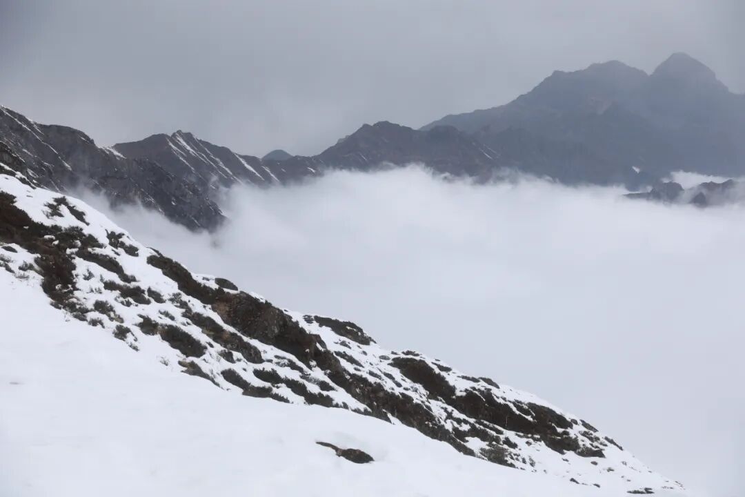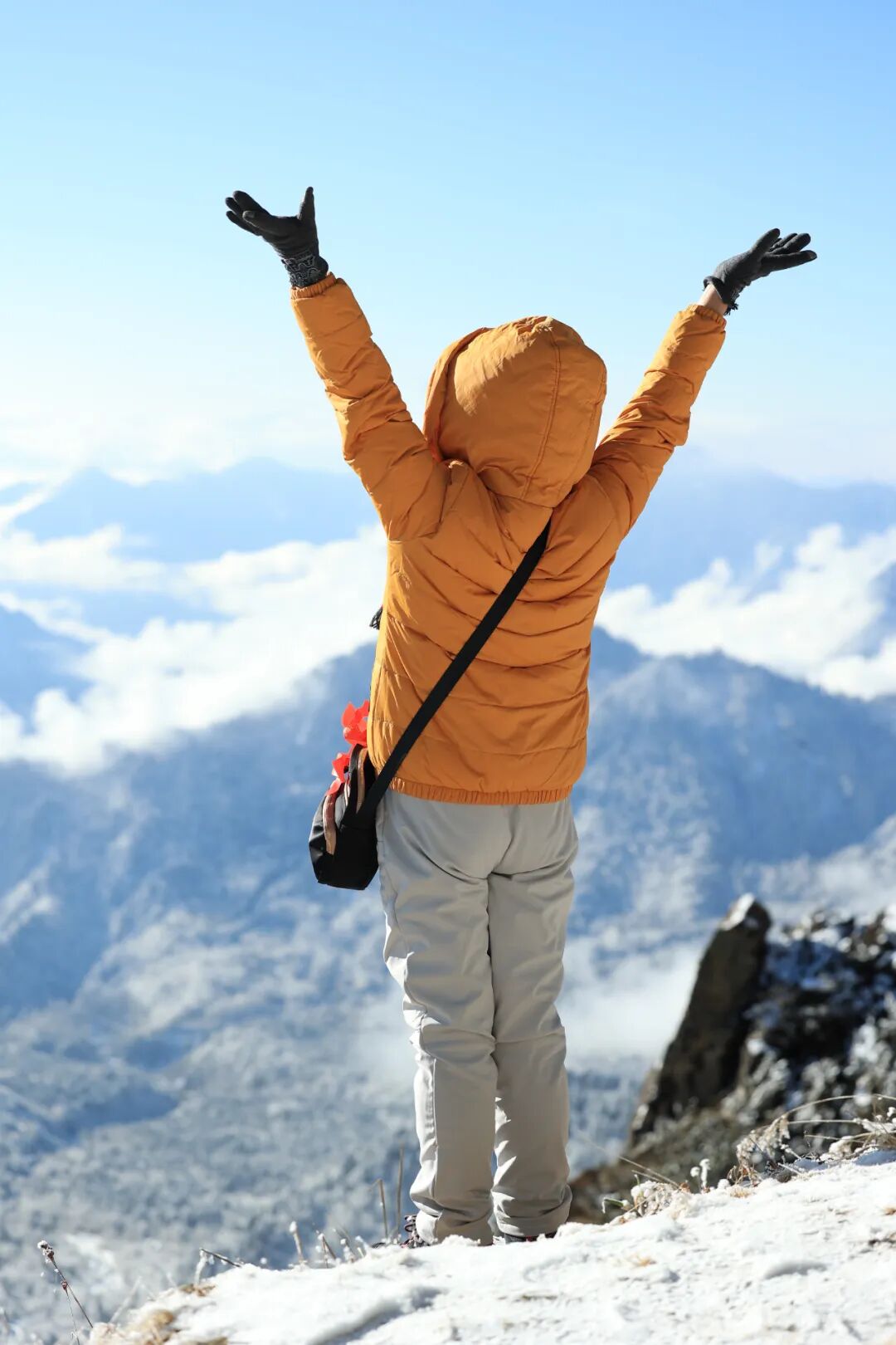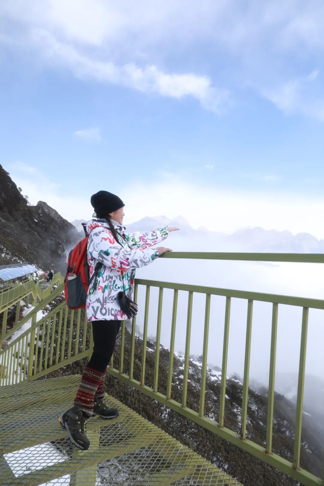 登临绝顶让翻滚的云海沉浮脚下,真正体验一把与太阳肩并肩的快感。眼前洁白如棉花般静静流淌的云海,如带滤镜一般的纯净蓝天,视线远方高耸伫立的巍峨雪山,这一切都是那么的难得!
