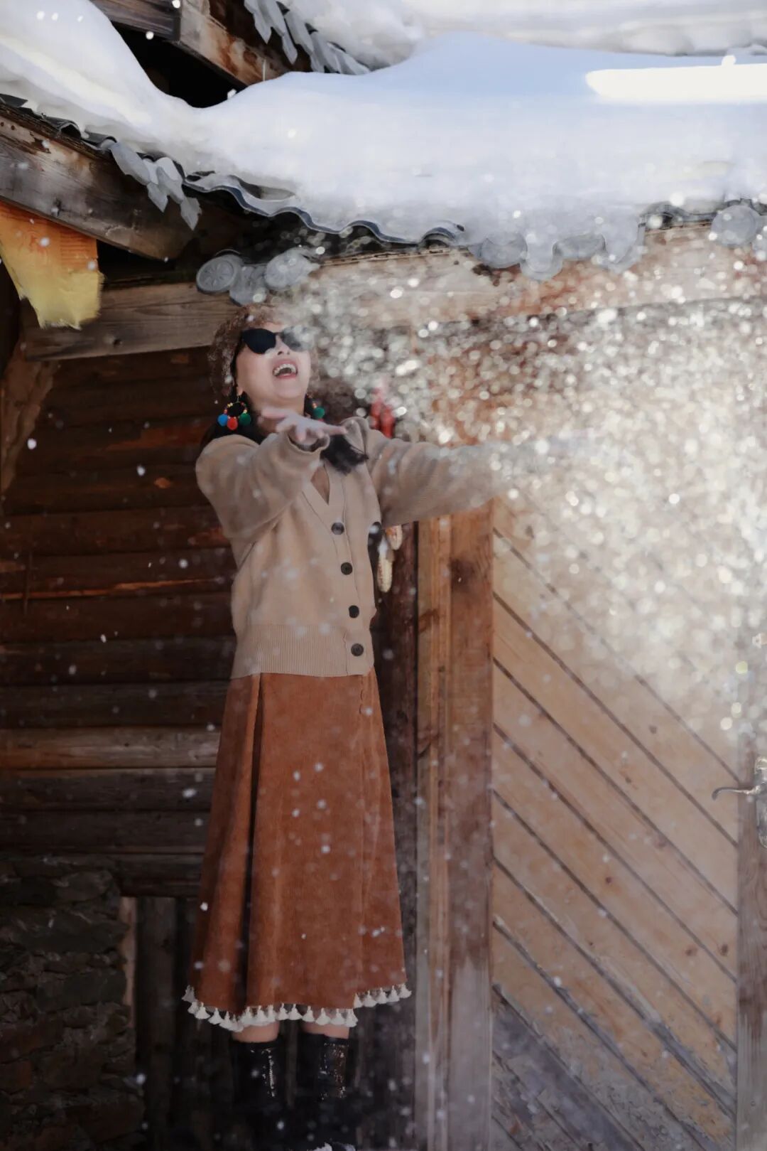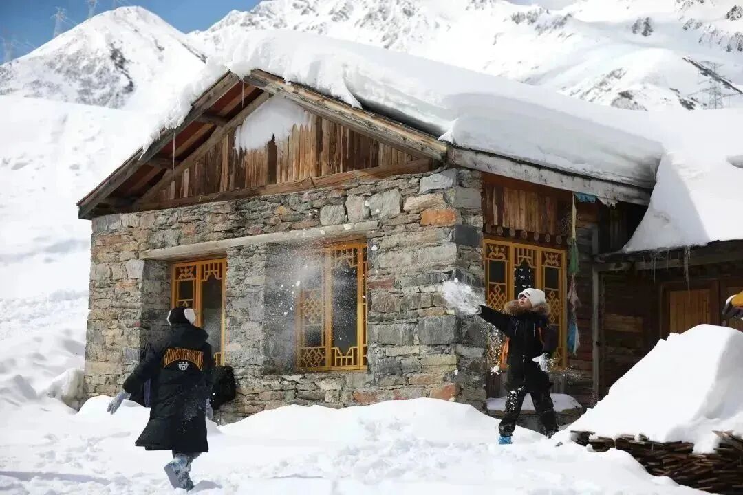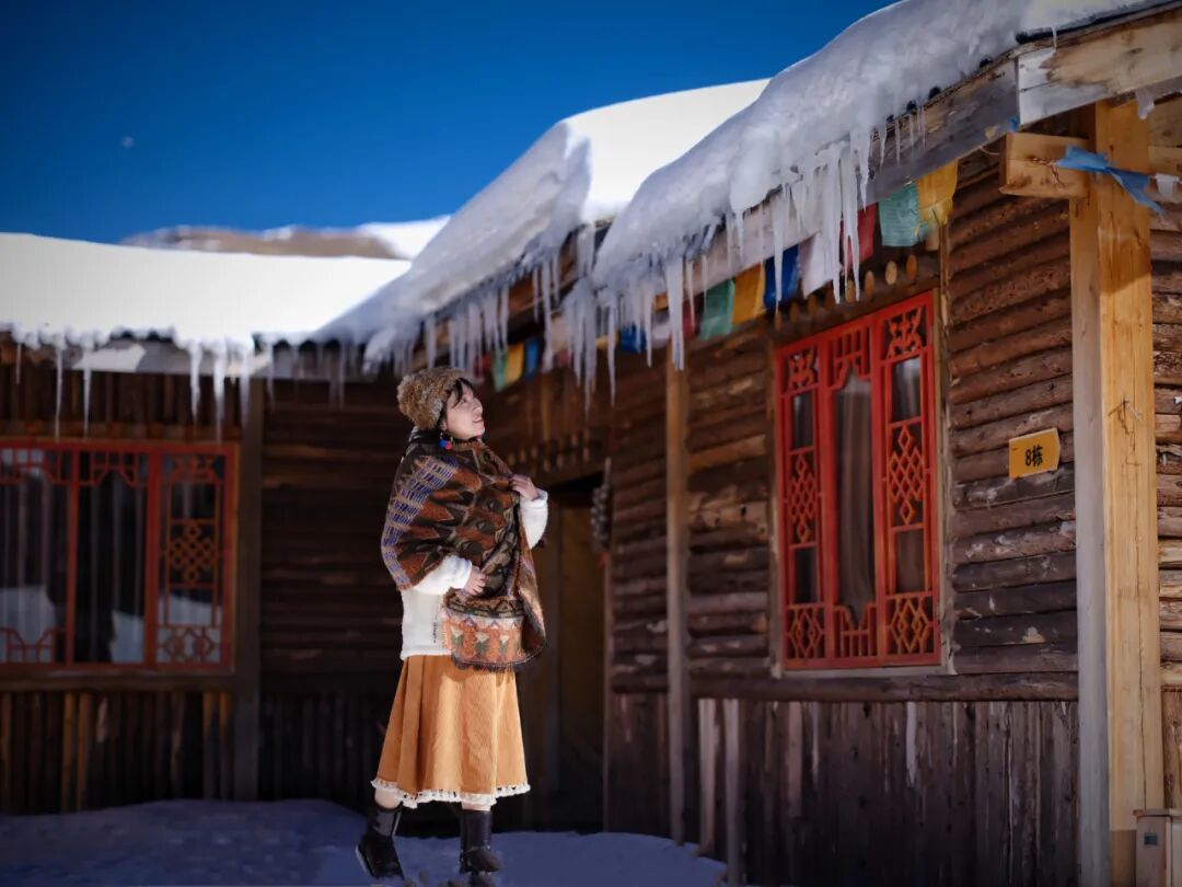 在这里可以变着花样打卡,不会滑雪就可以用滑雪铲从高处“咻”一下,或是拿一截冰溜子摆拍,或是将房前洁白的雪捏成球打雪仗,当南方人遇见雪,不用人教,也能玩出花来!