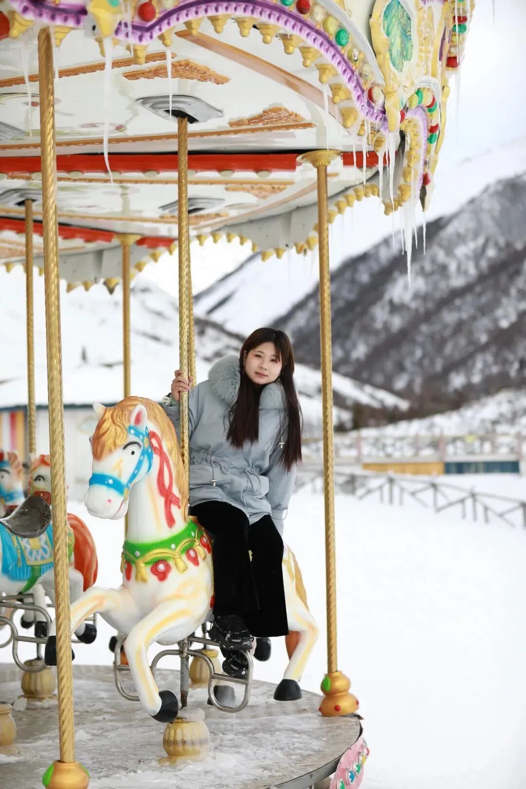 说这里是童话王国丝毫不夸张,因为这里除了滑雪场,还有旋转木马和适合小孩子玩的游乐园,雪雕与经幡是自成一派的,但仍旧让人觉得惊心动魄。