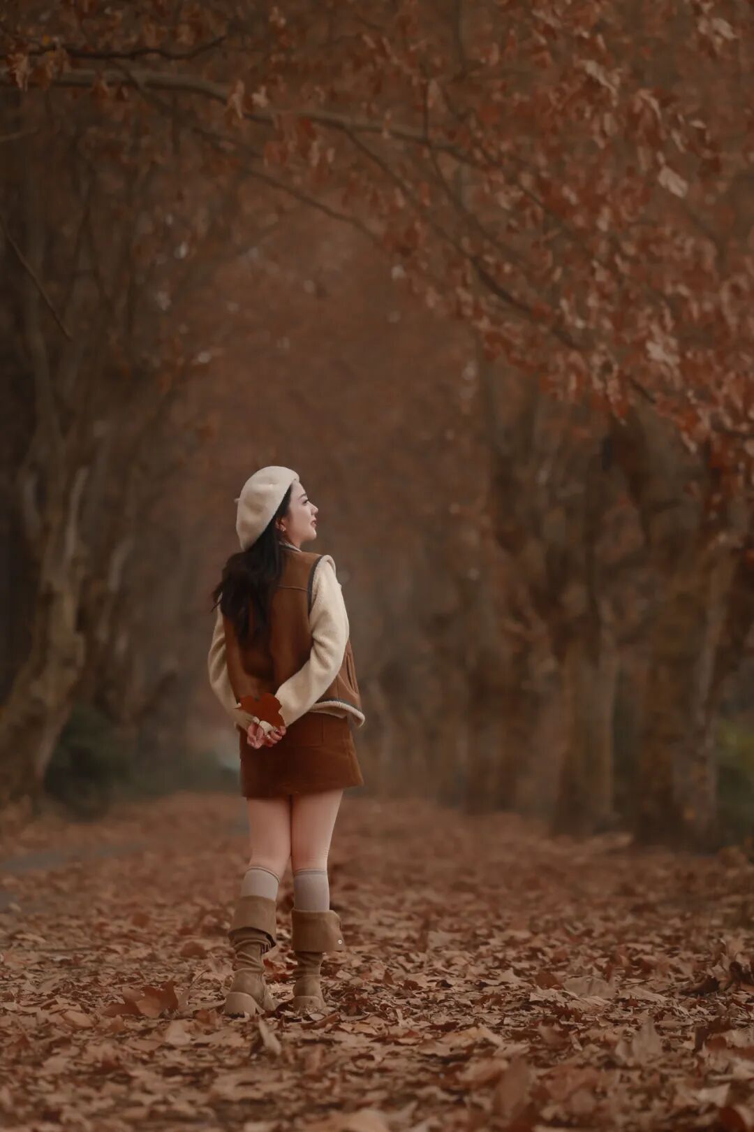 走在都江堰的梧桐大道上,抬头仰望,一棵棵梧桐树像披上一层金黄的外衣,走入其中,就仿佛进入了油画世界。焦糖色的梧桐树叶铺满了整条路,超级出片!
