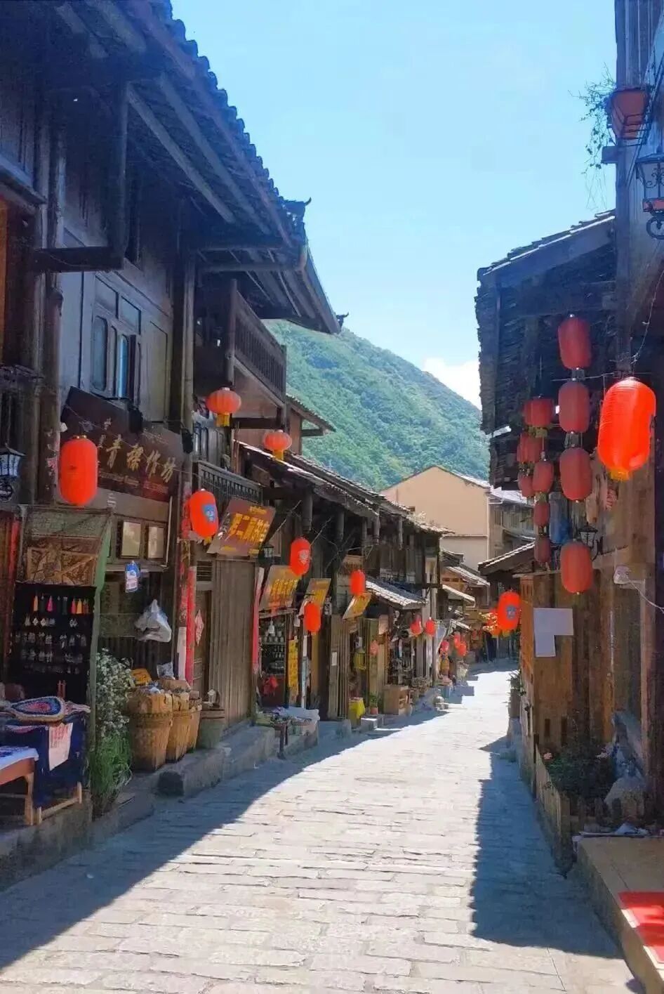 下山40分钟,抵达海螺沟门户——磨西古镇。古镇海拔1580米,被雪山与森林环抱,像被谁随手放在山坳里的木盒。青石板路被岁月磨得圆润,红灯笼在风中轻轻晃动。