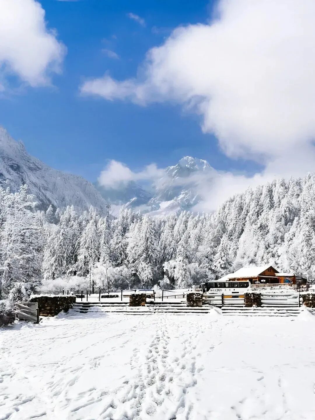 ⭐ 沿途美景:雪山下的磨西古镇;山野徒步翻越山脊线,看日照金山、云海翻滚、雪山海子,冬季还可以欣赏到蓝冰,感受无边界的自由感,随便怎么拍都出片。