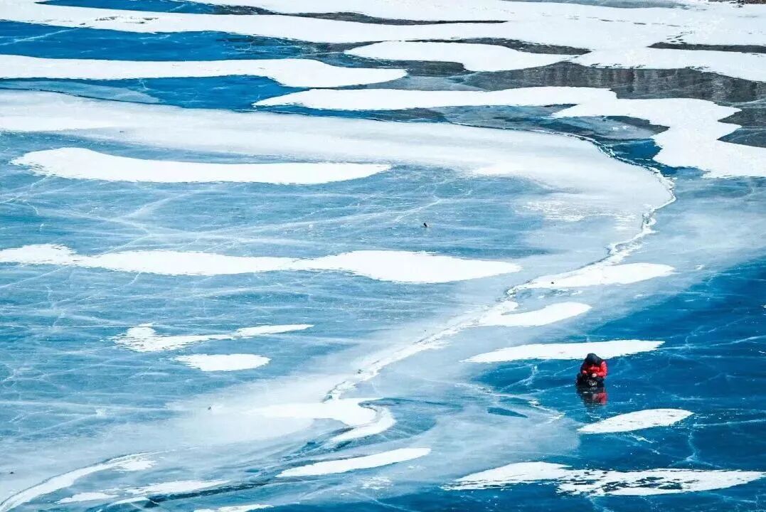 整个海子便形成了少有的蓝冰。