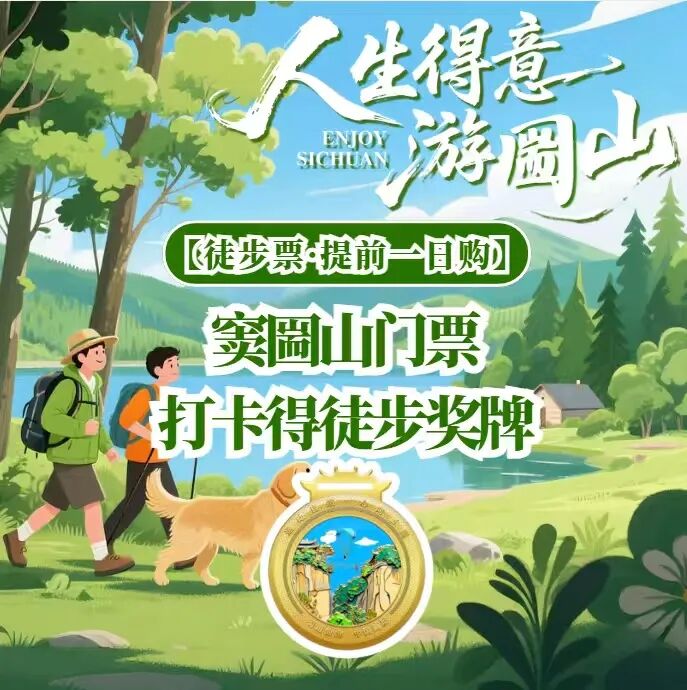 游玩打卡领取惊喜原创奖牌,登山打卡点疯狂出片,从游步道入口出发,开启主景区徒步之旅。依次徒步打卡窦圌山10个风景点位,打卡成功即可获得定制奖牌。